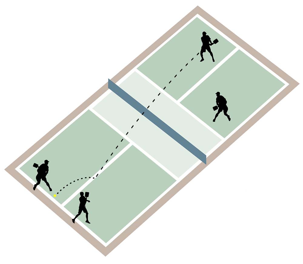• ピックルボールはダブルス (チームあたり 2 人のプレーヤー)、またはシングルスのいずれかでプレーします。ダブルスが最も一般的です。